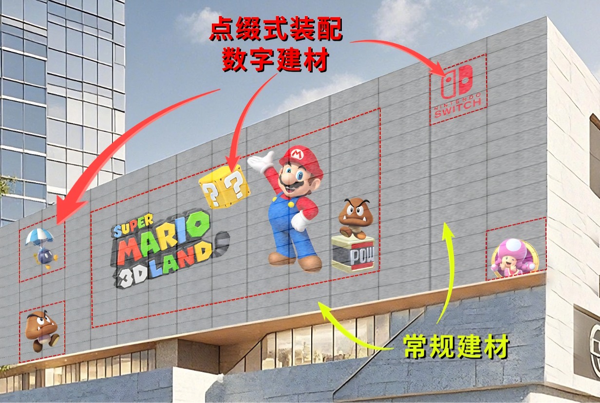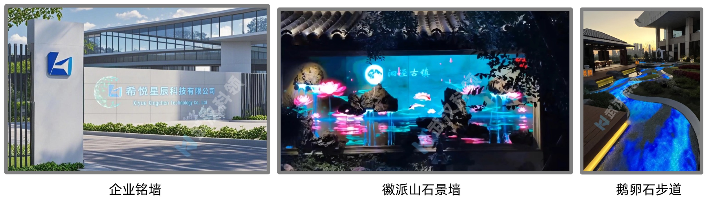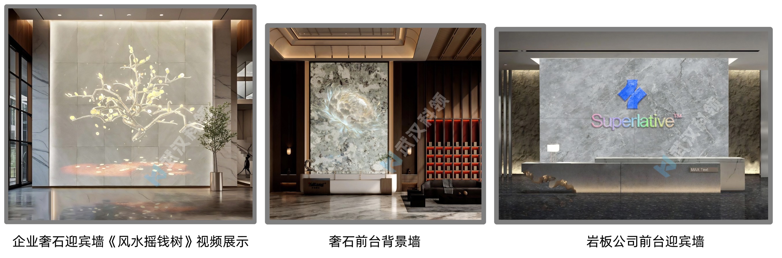 数字建材是将光电元器件+发光显示技术 与常规建筑材料(如石材、木材、水泥、金属、陶瓷等)深度融合,形成一种全新的自发光成像装饰板材。它不仅保持原有建材的质感与强度,还能显示文字、图像、视频及互动内容,让静态的建筑材料焕发数字生命,打造可视化、智能化、互动化的空间体验。体验者无需借助穿戴设备,即可体验以“虚拟坠入现实”手法打造的高能现实版元宇宙”。