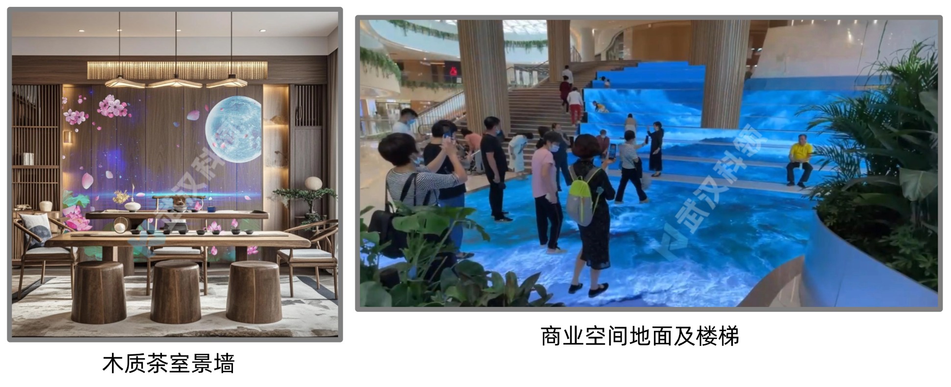 2.不挑环境:数字建材系列产品的安装方式及标准尺寸与建材行业标准保持一致,能够与传统装修材料无缝衔接。适配室内外,墙面、地面、天花均可应用,亮度范围 200~6000cd/m²。