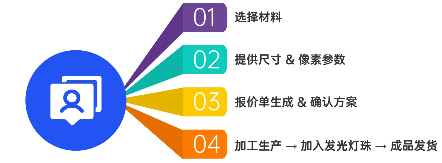 | 2. | 尺寸与分辨率:根据提供的尺寸及显示像素需求定制,像素越小精度越高 |